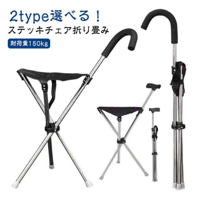 | 【2type選べる!】 【耐荷重150kg】 杖にも、ちょいかけ椅子にもできる1台で2役の軽量ステッキチェア | |