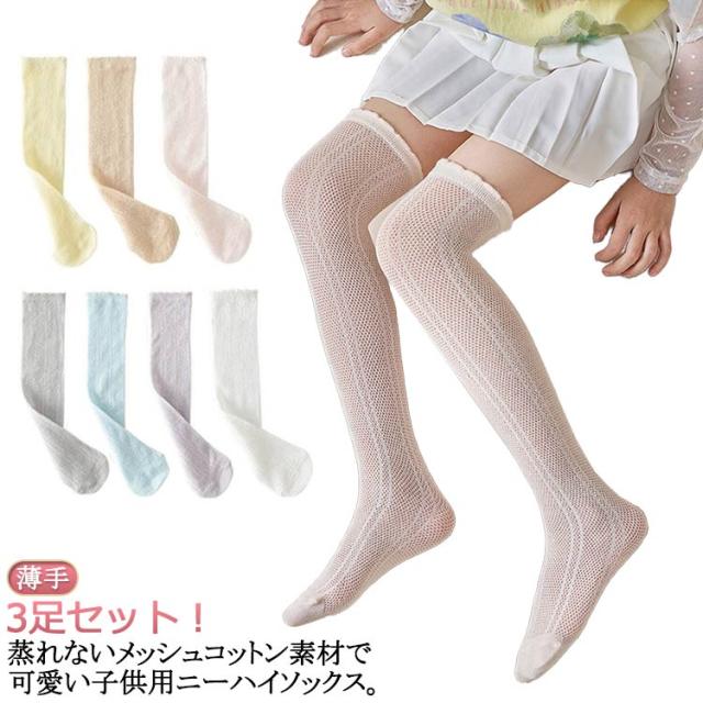 靴下 靴下 ハイソックス 3足組 メッシュハイソックス 薄手 ニーハイソックス 可愛い 膝上ハイソックス 夏 涼しい ソックス 女の子 蒸れない ジュニア 夏 フリル