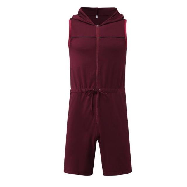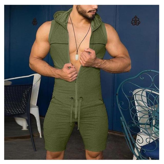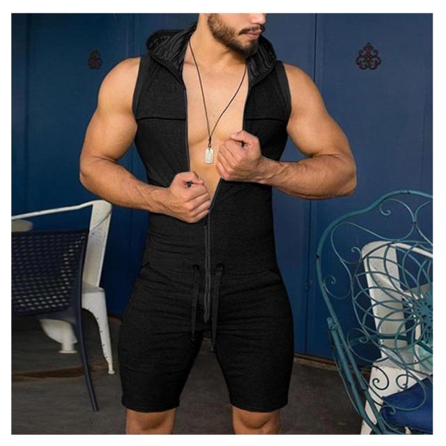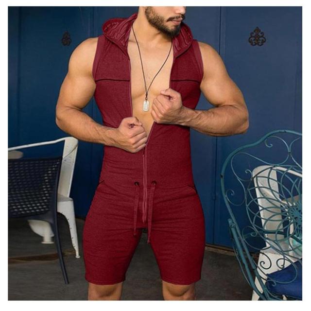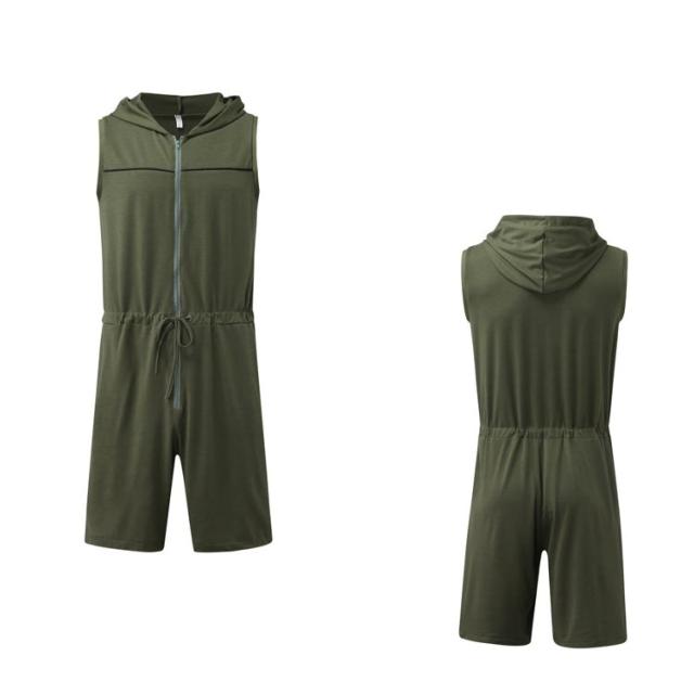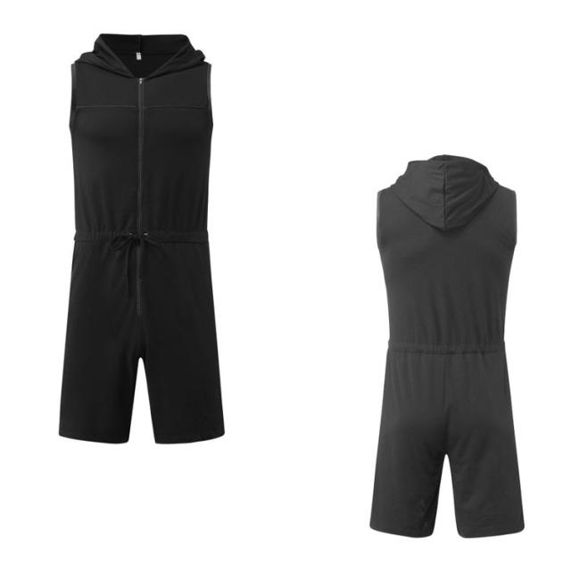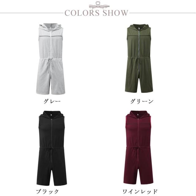フード付きオールインワン レトロ つなぎ サロペット スウエット メンズ フード付き オーバーオール ジャンプスーツ 夏 ノースリーブ 袖なし つなぎ服 フード付きオールインワン メンズ ショートパンツ ルームウェア 部屋着 パジャマ 作業服