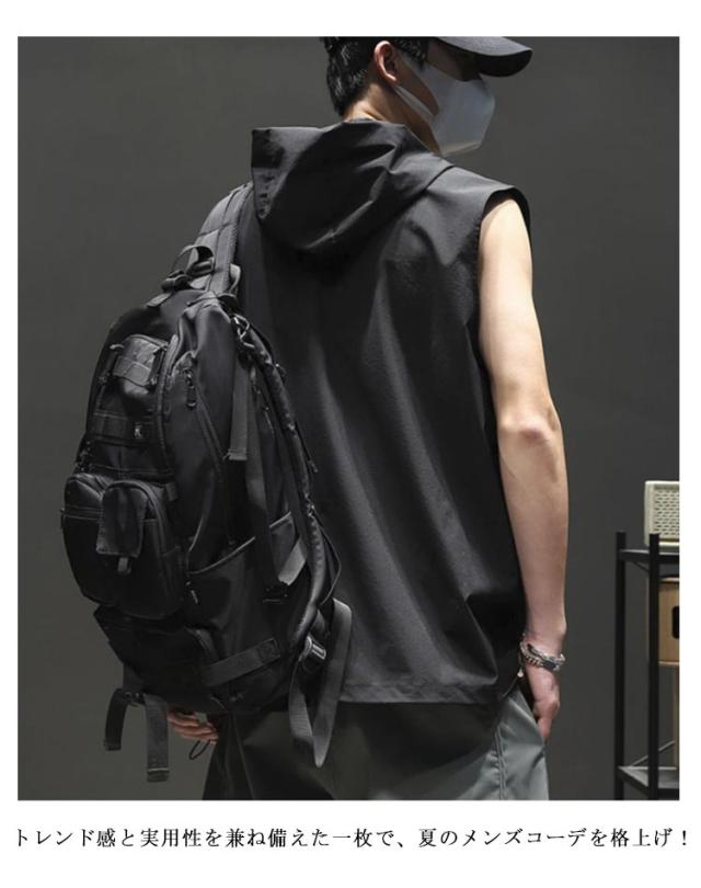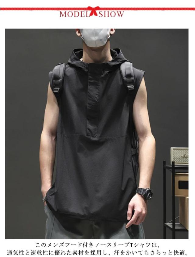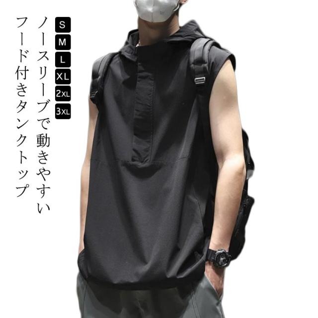ノースリーブパーカー 夏用 パーカー ノースリーブ メンズ タンクトップ フード付きベスト トップス スポーツ ジムウェア 吸汗速乾 大きいサイズ 黒 20代 30代