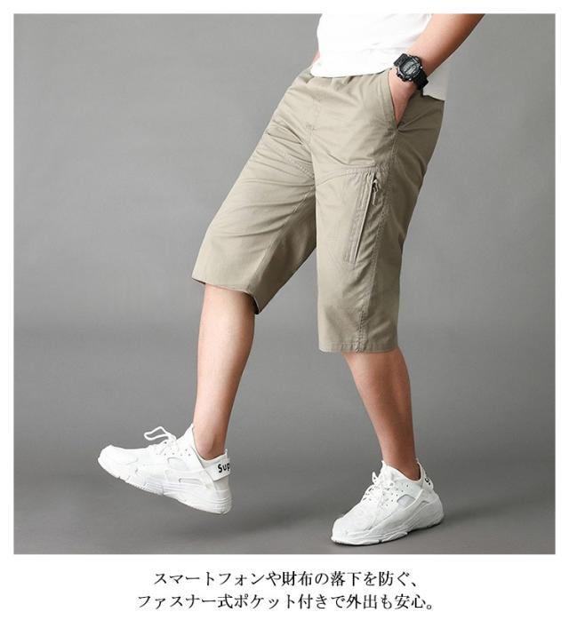 大きいサイズ クロップドパンツ クロップドパンツ シニア 部屋着 綿 ストレートパンツ ハーフパンツ 春夏 ズボン ウエストゴム 夏用 無地 ルームウェア カジュアル サマーパンツ 七分丈 薄手 40代 50代 60代 メンズファッション ゆったり