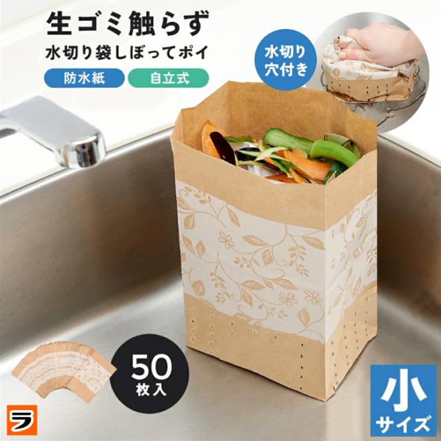 水切り袋 しぼってポイ 小 50枚入 日本製 エレガント柄 三角コーナーいらずの 自立型 水切りゴミ袋 防水紙仕様の 使い捨て 生ゴミ入れ 紙袋 シンク 台所 ゴミ箱 ごみ箱 スリム 生ごみ袋 深型 紙のゴミ袋