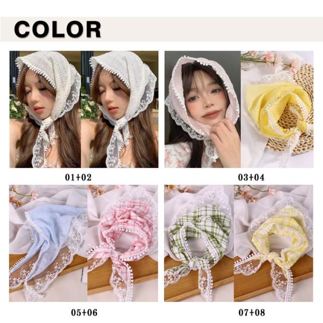 レディース 春夏スカーフ バブーシュカ レース レース ヘアアクセサリー 三角巾 韓国ファッション おしゃれ 2個セット ヘアバンド バンダナ 夏 春 ヘッドドレス ヘアターバン ヘッドスカーフ カジュアル カチューシャ 花柄 トレンド 旅行