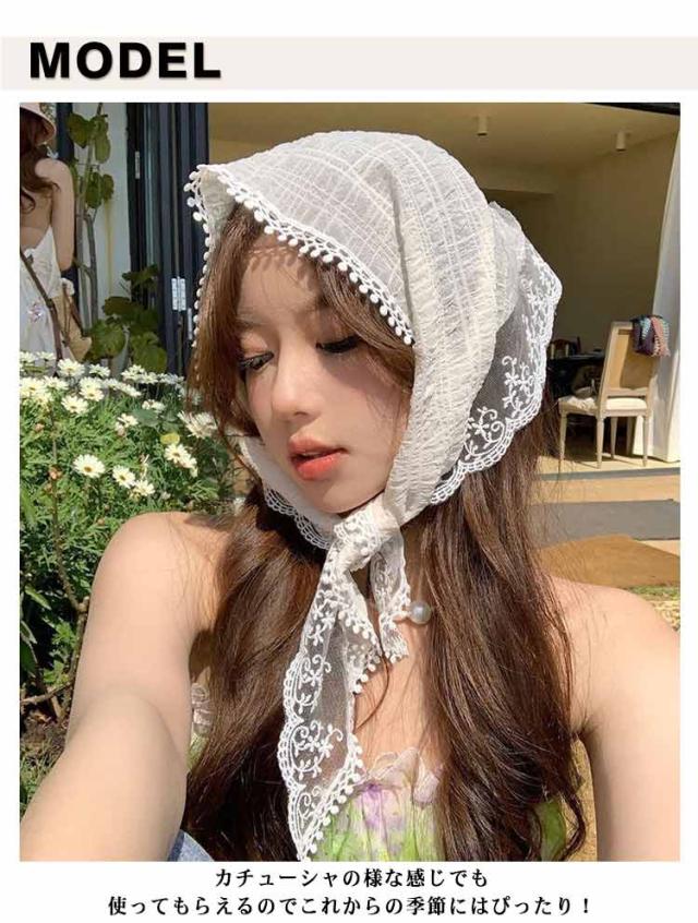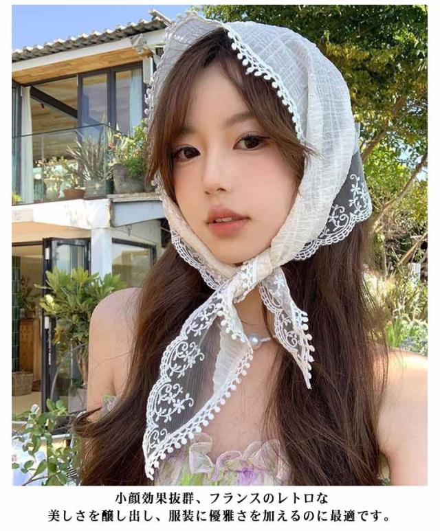 | レース×透け感が可愛いバンダナに◎ヘアスカーフ。 カチューシャの様な感じでも使ってもらえるのでこれからの季節にはぴったり! 小顔効果抜群、フランスのレトロな美しさを醸し出し、服装に優雅さを加えるのに最適です。 コンパクトになりますので持ち運びにも便利。 | |