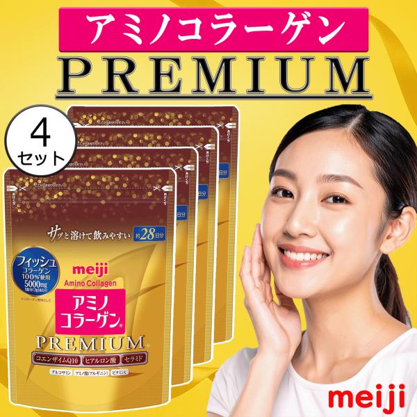 明治 meiji アミノコラーゲン プレミアム 約28日分 196g 4個セット 美容 健康 コエンザイム ヒアルロン酸 セラミド プレーン味 飲みやすい 溶かすだけ 簡単摂取