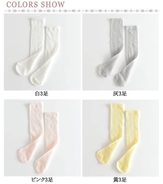 ソックス 可愛い ハイソックス 女の子 靴下 メッシュハイソックス ニーハイソックス 夏 3足組 膝上ハイソックス 涼しい 靴下 キッズ 蒸れない ジュニア 夏 フリル