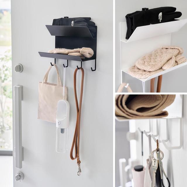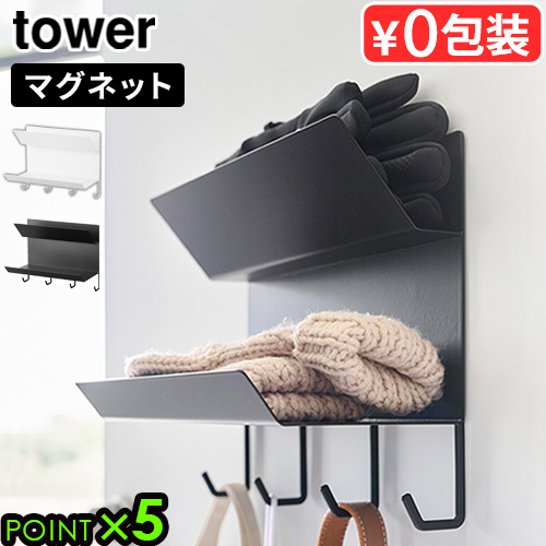 タワー 山崎実業 tower フック付きマグネット手袋ホルダー 1971 1972 YAMAZAKI ウォールラック ウォールシェルフ 収納棚 玄関 磁石 マグネット フック フック付き 2段 浮かせる収納 壁面 ラック シェルフ 収納 見せる収納 定位置 P5倍