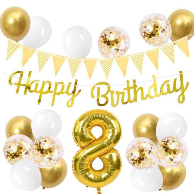 誕生日 バルーン 風船 セット 大きい 40inch ライト ゴールド 数字 バルーン 付け 約100cm シンプル 黒金 ケーキ 誕生日 飾り ハッピー バースデー HAPPY BIRTHDAY ガーランド 12inch ゴールド ブラック 風船 18pcs 飾り付け セット 子供 女の子 男の子 大人 (ゴールド, 8歳)