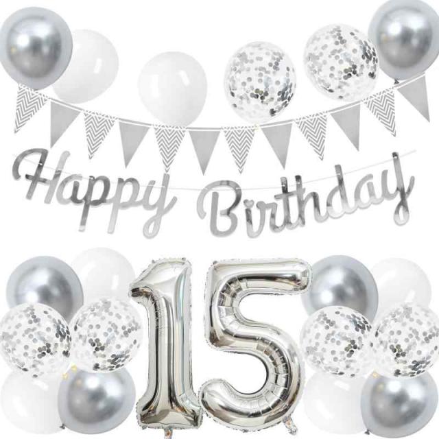 誕生日 バルーン 風船 セット 大きい 40inch ライト ゴールド 数字 バルーン 付け 約100cm シンプル 黒金 ケーキ 誕生日 飾り ハッピー バースデー HAPPY BIRTHDAY ガーランド 12inch ゴールド ブラック 風船 18pcs 飾り付け セット 子供 女の子 男の子 大人 (シルバー, 15歳)