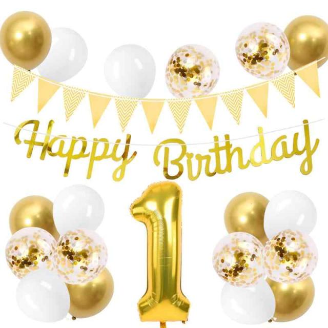 誕生日 バルーン 風船 セット 大きい 40inch ライト ゴールド 数字 バルーン 付け 約100cm シンプル 黒金 ケーキ 誕生日 飾り ハッピー バースデー HAPPY BIRTHDAY ガーランド 12inch ゴールド ブラック 風船 18pcs 飾り付け セット 子供 女の子 男の子 大人 (ゴールド, 1歳)