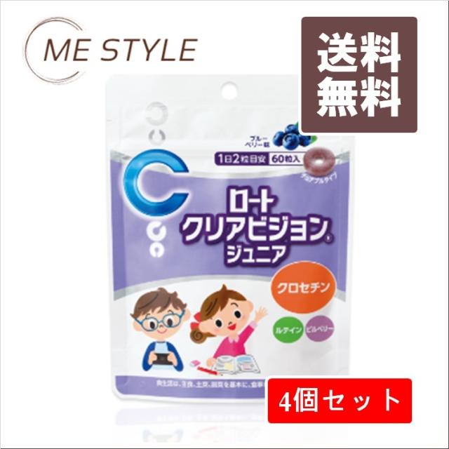 ロートクリアビジョン / 4個<ロートクリアビジョンジュニアについて>ポリポリ食べやすいブルーベリー味のドーナツ型チュアブルタイプの食品です。クロセチン、ルテイン、ビルベリー含有。勉強や読書に集中したあとのおやつにも。<お召し上がり方>1日2粒を目安に、かんでまたは口中で溶かしてお召し上がりください。(過剰に摂取することは避け、1日の目安量を守ってください。)<原材料名>還元パラチノース、ブルーベリー果汁末、ビルベリーエキス末/ソルビトール、甘味料(キシリトール、アスパルテーム・L-フェニルアラニン化合物)、クエン酸、ステアリン酸Ca、セルロース、クチナシ色素、香料、マリーゴールド色素栄養成分表示 2粒(1600mg)あたりエネルギー:4.8kcal、たんぱく質:0.0016g、脂質:0.029g、炭水化物:1.5g、食塩相当量:0.000064〜0.00064g<内容成分>クロセチン(クチナシ色素由来):2.5mg、マリーゴールド色素(ルテイン含有)、ビルベリーエキス末(ビルベリー含有)【関連ワード】サプリメント
