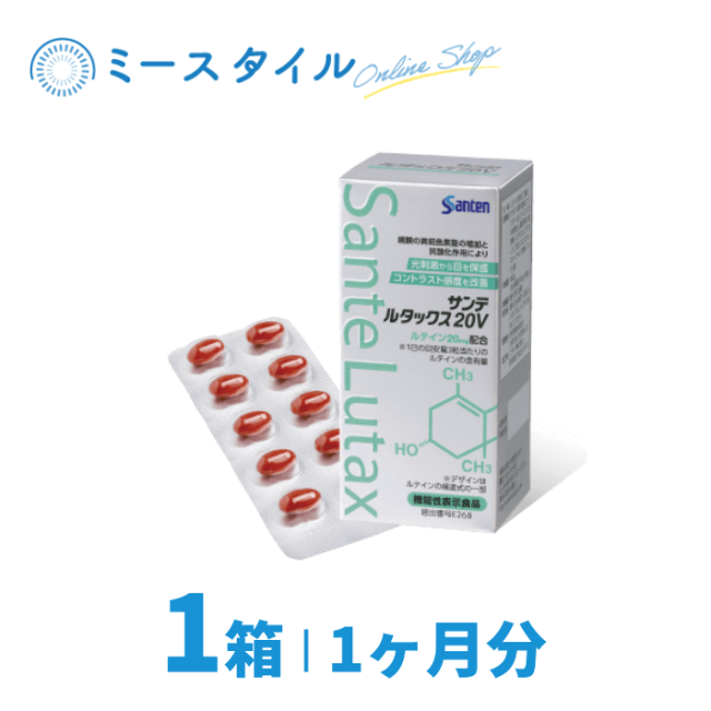 サンテ ルタックス20V / 1個[名称]ルテイン含有加工食品[栄養成分]ルテイン 20mgゼアキサンチン 3mgビタミンC 300mgビタミンE 150mg亜鉛 15mg銅 1.2mg熱量 9.0kcalたんぱく質 0.44g脂質 0.60g炭水化物 0.47g[接種目安]1日3粒[原材料名]ゼラチン、サフラワー油、ビタミンE含有植物油、亜鉛酵母銅酵母、ビタミンC、グリセリン、グリセリンエステル、マリーゴールド色素、フィチン酸[内容量]90粒[賞味期限]製造月より3年間[保存方法]直射日光を避け、湿気の少ない涼しいところに保存してください【関連ワード】サプリメント