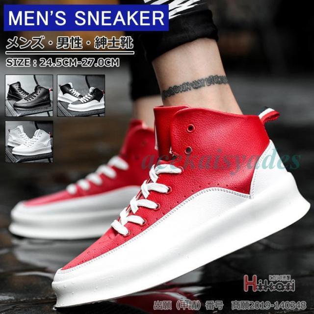 ハイカットスニーカー メンズ 靴 厚底 白 黒 カジュアルシューズ ランニングシューズ ダンス おしゃれ 父の日