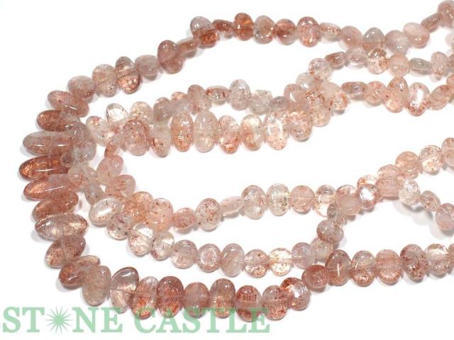 【カットビーズ】ストロベリーサンストーン サイズグラデーション 平タンブル 天然石 パワーストーン