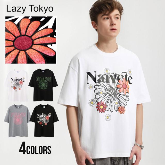 Tシャツ メンズ 半袖 ブランド 半袖Tシャツ おしゃれ ロゴ プリント 刺繍 花柄 フラワー 大きいサイズ ゆったり シンプル ホワイト ブラック 白 黒 大人 Lazy Tokyo レイジートウキョウ 20代 30代 40代 ユニセックス 男性 男 服 春 夏 夏服 春夏 ファッション [25028139]