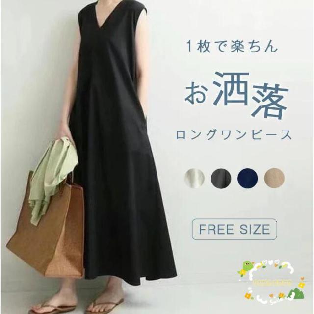ワンピース マキシワンピース レディース 夏 ノースリーブ ワンピース マキシ丈 Aライン Vネック ワンピース ノースリーブ