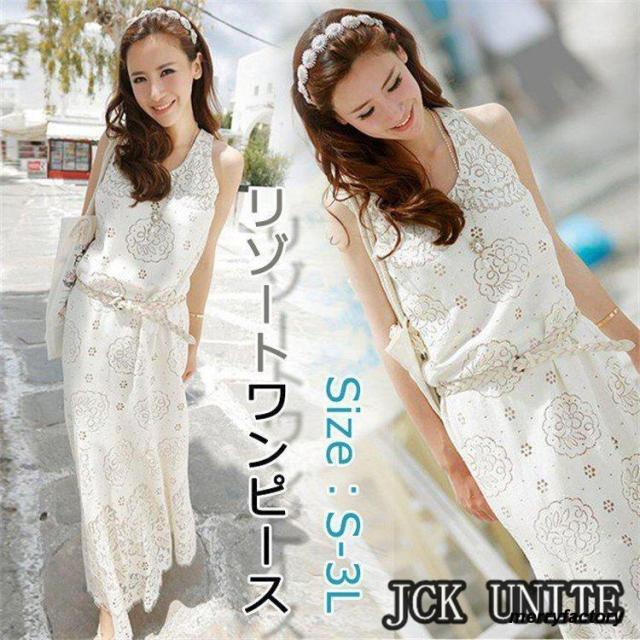 リゾートワンピ ハワイ リゾートワンピース 夏 秋 ワンピース ノースリーブ マキシワンピース ボヘミア ロング リゾート ワンピース ビーチ マキシワンピ 沖縄 オシャレ 大人 レディース ホワイト