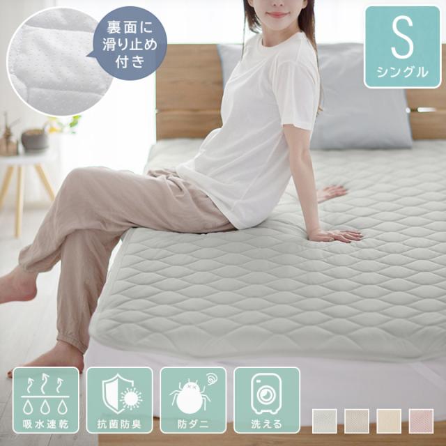 敷きパッド さらさら シングル 清潔 吸水速乾 ニットメッシュ 滑り止め オールシーズン ずれにくい ウォッシャブル 25S073