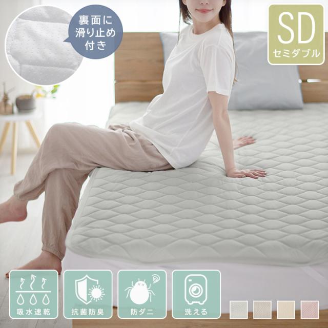 敷きパッド さらさら セミダブル 清潔 吸水速乾 ニットメッシュ 滑り止め オールシーズン ずれにくい ウォッシャブル 25S074