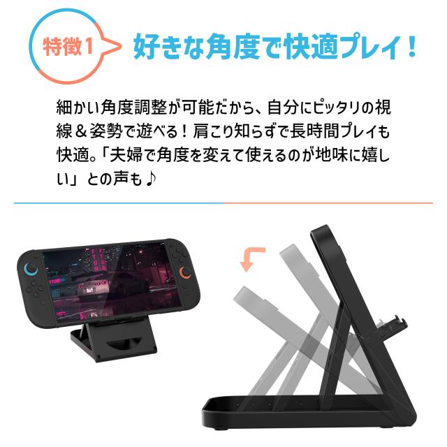 Nintendo Switch 2 スタンド Joy-Con 任天堂 スイッチ2 ジョイコン Joy Con Joy-Con スイッチ ゲーム 収納 旅行 新幹線 飛行機 持ち運び 周辺機器 卓上 角度調節 デスク 折り畳み アクセサリー ブラック