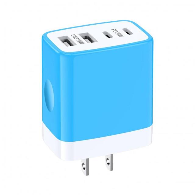 Viviber 新型usb コンセント4ポートiPhone16 type-c充電器(USB-CポートPD20W+USB-Aポート10W)USB-C電源アダプター (ブルー)
