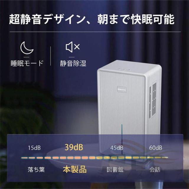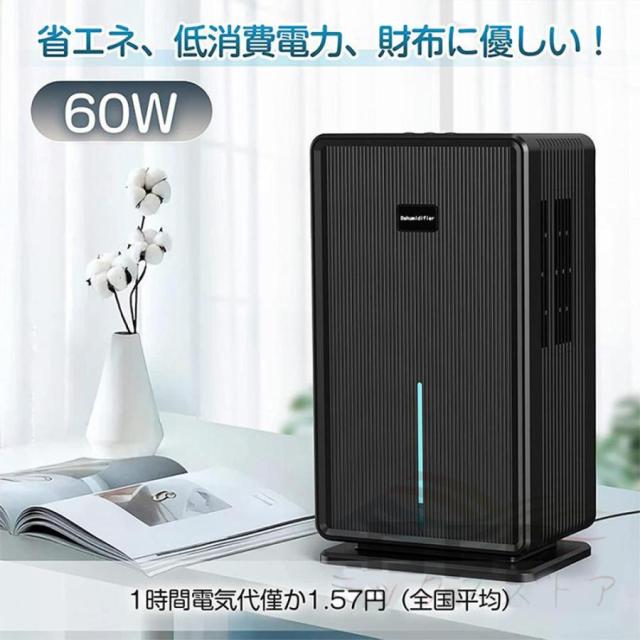 60W出力ので1時間当たり約1.2円(利用環境や地域より区別がある)でびっくりほど省エネ小型除湿機で、電気料も節約。35dBぐらいの運転音がほかの除湿機の方が静かで休み、勉強など時に邪魔にならない。