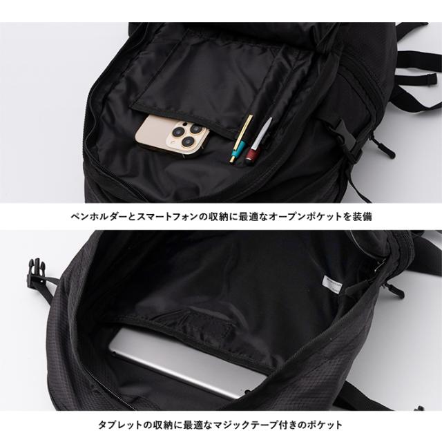 大容量のリュックサックでありながらスタイリッシュなデザインで、