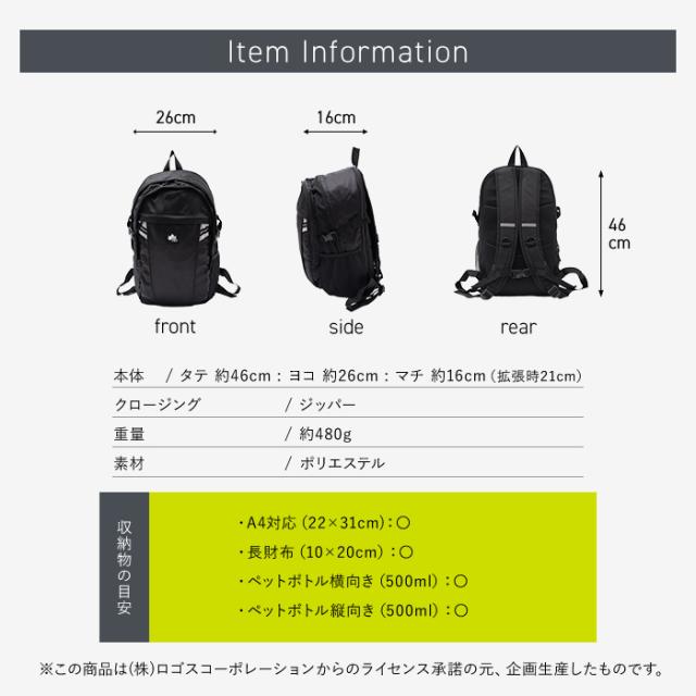 LOGOS Park ロゴスパーク リュック バックパック リュックサック デイパック リフレクター 反射 メンズ 男女兼用 Lサイズ 軽量 大容量 おしゃれ 通勤 通学 プレゼント 送料無料 ラッピング無料