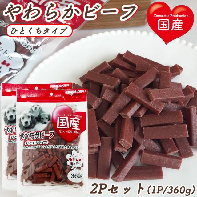 ジャーキー 犬 おやつ やわらかビーフ ひとくちタイプ 2P (1P/360g) 送料無料 全犬種用 犬用おやつ ドッグフード ペットフード 乾燥肉 国産素材使用 国産 【ITFC】 MLD-mp0018