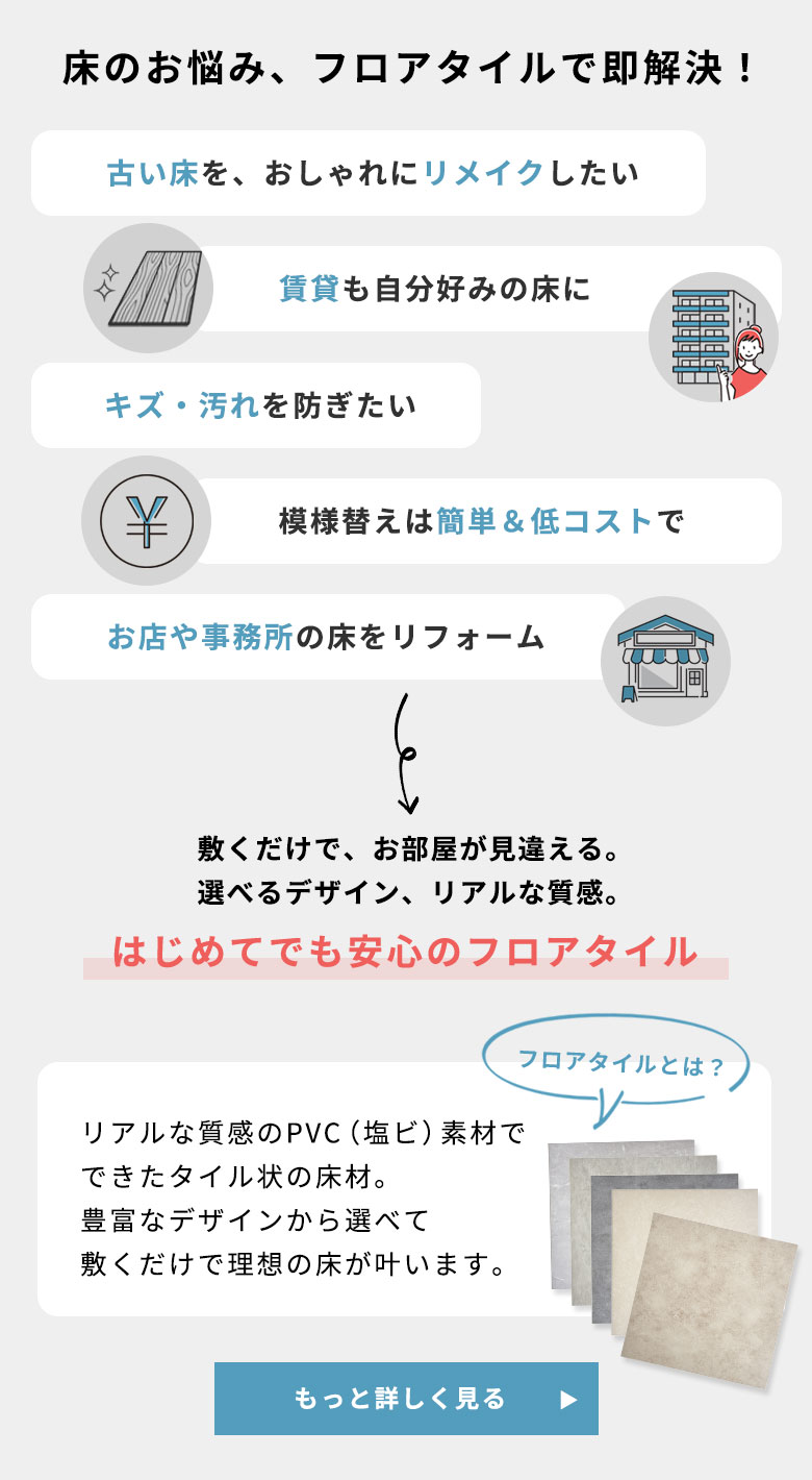 そんな方におすすめなのが、敷くだけで完成するフロアタイル。