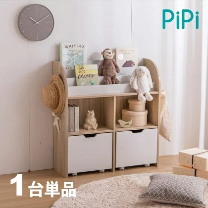 PiPi ピピ【1台単品】絵本ラック ナチュラル 幅84cm 奥行29.5cm 高さ90cm 組み立て商品 収納シェルフ 収納ラック 本棚 児童図書館 小児科待合室 絵本棚 絵本スタンド 絵本収納 保育園 児童館 幼稚園