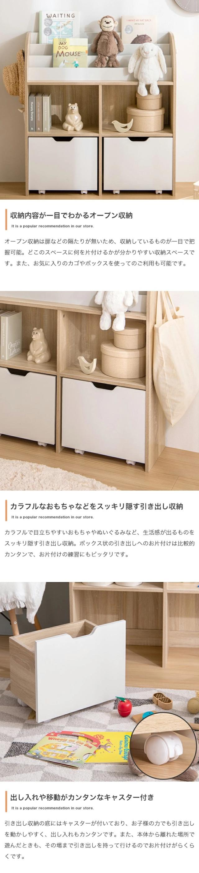 お子様の絵本やおもちゃをまとめてこの1台に収納可能。