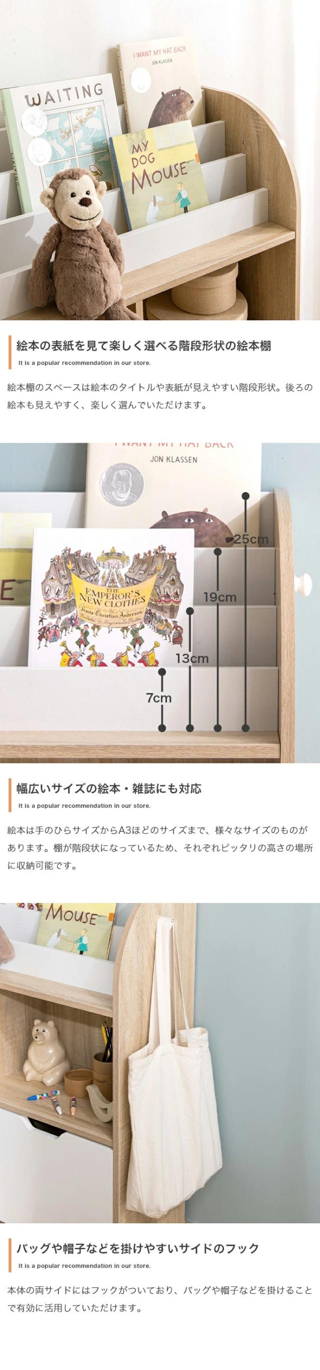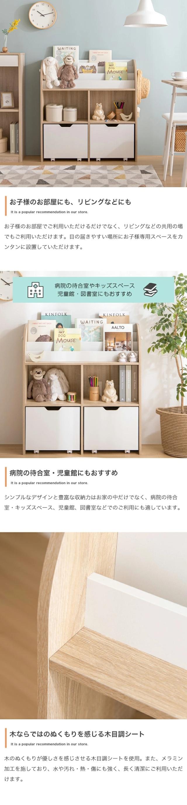 お子様のおもちゃや絵本をまとめてスッキリ収納可能な絵本棚