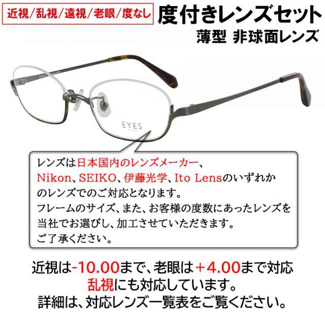 | 商品詳細 度付き メガネ 近視 老眼 遠視 乱視 度なし だて メンズ レディース 男女兼用のユニセックスモデル スタイリッシュで、おしゃれな、アンダーリム 逆ナイロールタイプの スクエアシェイプのメガネフレーム 鼻パッドは調整可能なクリングス鼻パッドを採用! レンズはUVカット標準仕様で、傷つきにくいマルチハードコートの高品質な非球面薄型レンズとなっています。 近視 度数は-10.00まで、老眼度数は+4.00まで対応。 乱視にも対応しています。度なしの伊達メガネも対応。 詳細は、対応レンズ 一覧表をご覧ください。 | |