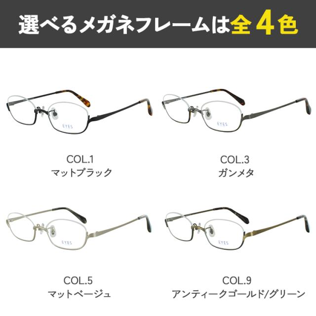 | <フレームカラー> COL.1 マットブラック COL.3 ガンメタ COL.5 マットベージュ COL.9 アンティークゴールド/グリーン | <素材> フレーム材質:メタル合金 テンプル材質:メタル合金 |