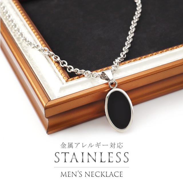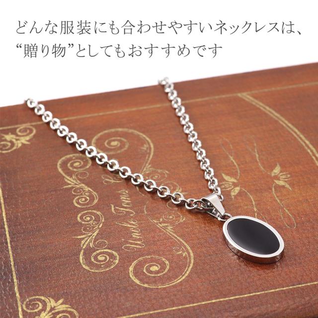 メンズ ネックレス チェーン ロング オーバル 黒 ブラック 長い 60cm ステンレス ロングサイズ シンプル ペンダント アクセサリー 長め 金属アレルギー 金アレ 対応 おしゃれ かっこいい 楕円 丸 プレート メンズ用 大きめ 男性 プレゼント ギフト 父の日 母の日 ギフト 2026