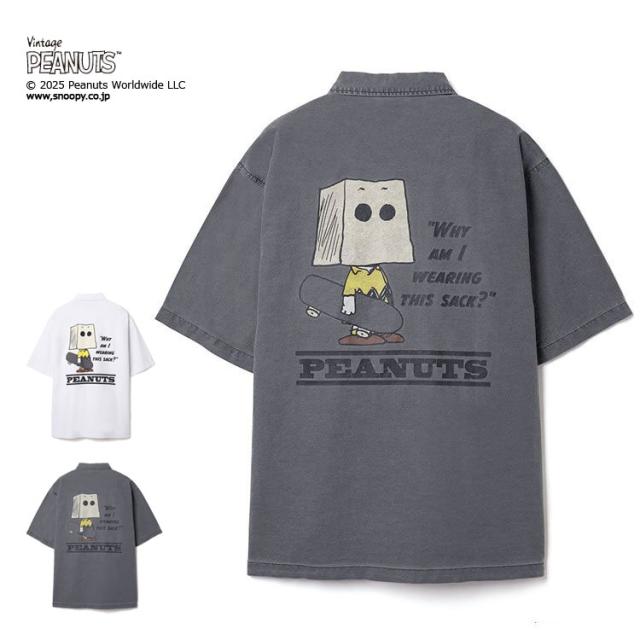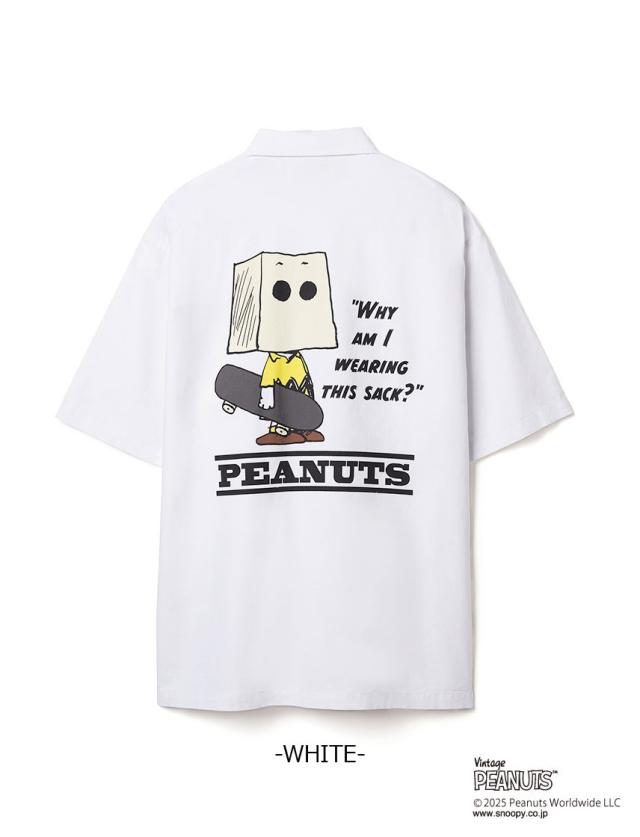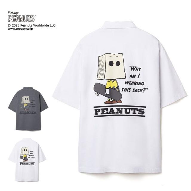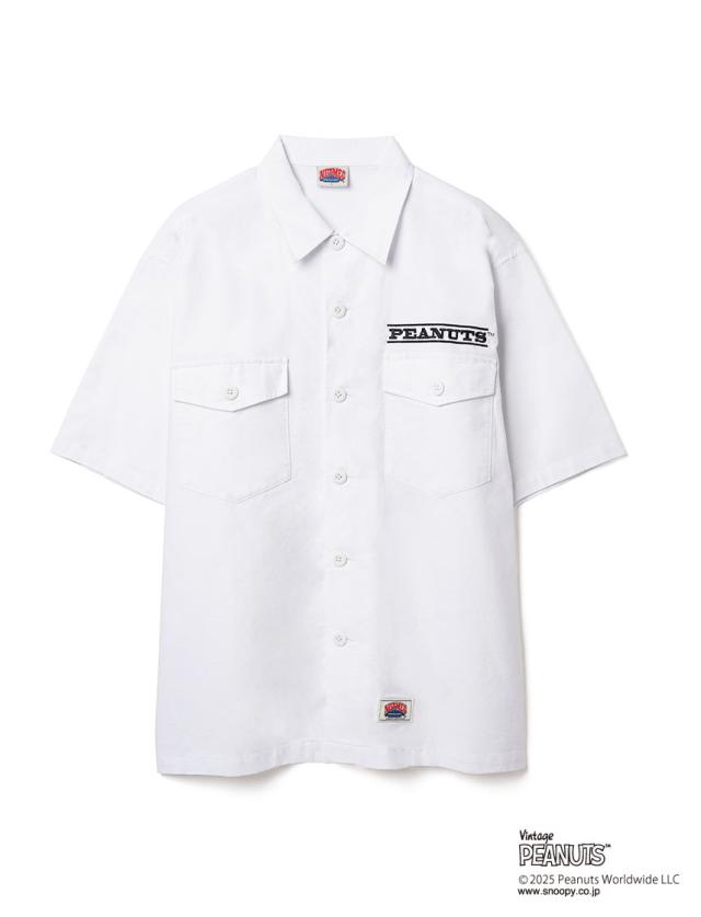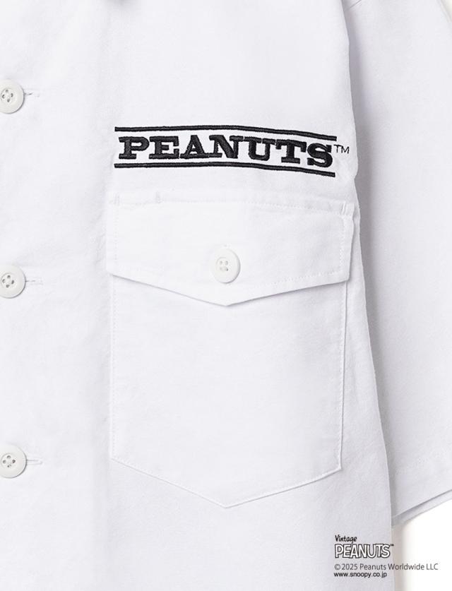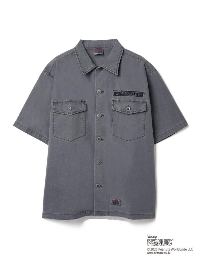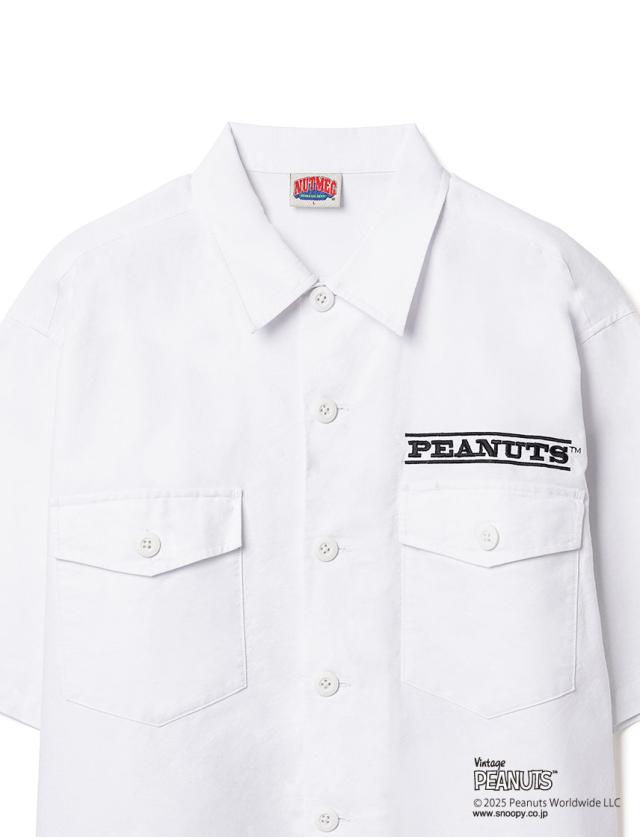 PEANUTS ミリタリー 半袖シャツ スケートボード NUTMEG ダブルーネーム パックプリント チャーリーブラウン ミスターサック スポーツ ストリート リラックスシルエット 2J8-15883