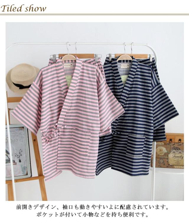 | 通気性が良く着心地も抜群で、お肌にも優しい綿素材です。上着をしっかり固定してくれる付け紐は、サイズ調整として活躍してくれます。 前開きデザイン、袖口も動きやすいよに配慮されています。ポケットが付いて小物などを持ち便利です。 普段の寝巻き、ルームウェアとして、旅行等のお泊り用も役に立ちます。部屋、旅館、ホテル、お風呂上り、スパ、サウナに適用されます。 通気性の良い素材を採用しているので、寝苦しい夜でも安眠快適です。 リラックスウェアーとしてまたパジャマ替わりにも着て頂けるので、幅広くご着用頂けます。お友達同士で合わせても可愛いです。 | |
