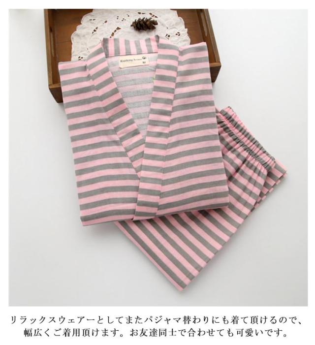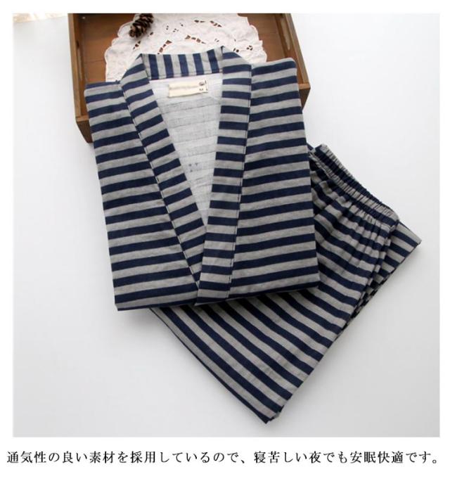 甚平 ナイトウエア 上下セット 寝巻き コットン 男女兼用 ストライプ柄 パジャマ カップルペア メンズ セパレートパジャマ 長ズボン ルームウェア ナイトウエア 春 夏 浴衣 七分袖 レディース