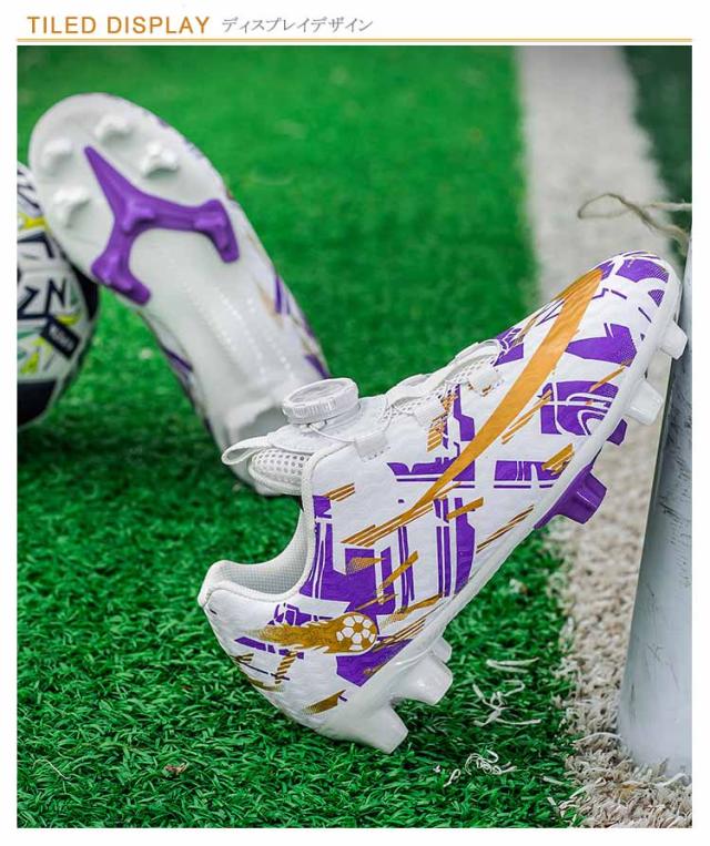 | 19 ? 24.5cm クルクル回すだけでフィット具合調節簡単 小学生にとって最適なサッカーシューズです。 靴紐のないダイヤル式で、トレーニング中もワイヤーが緩む心配がないので、安心してトレーニングに集中できます。 滑らかな合成皮革、耐摩耗性と防水性があり、防滑や防震機能付きの優れたクッション性もあり、雨の日にも楽に運動できます。 屈曲性に優れたソール、自然な動きをサポートするデザインで足のサポート、固定、保護により、運動中により積極的に動き始めます。 | |
