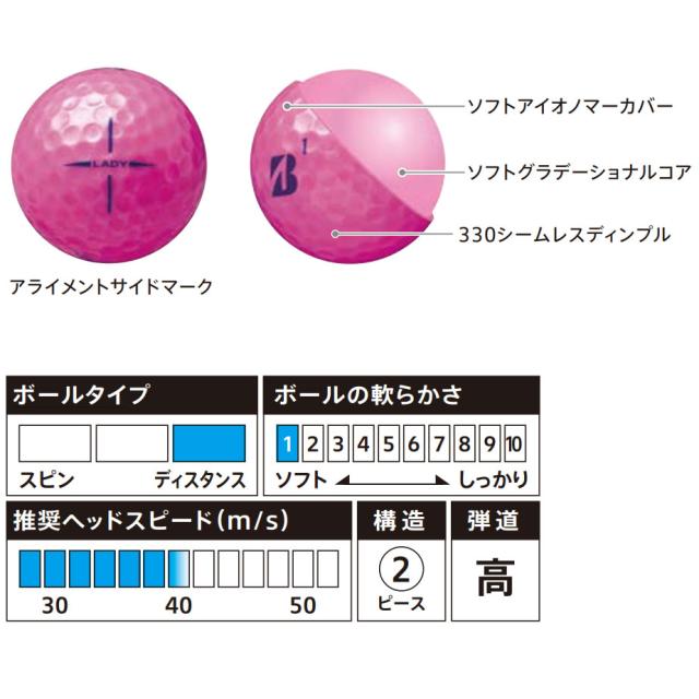 ブリヂストン ゴルフ 2025 レディ ボール 1ダース(12球) LADY BRIDGESTONE GOLF