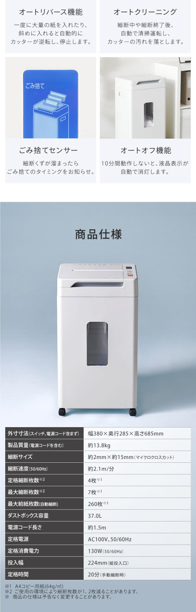 [検索用:シュレッダー オフィス 静音 自動 電動 マイクロクロスカット 業務用 会社 書類 個人情報 大容量 37L キャスター付き 最大細断 A4 7枚 最大給紙 210枚 オートクリーニング くずならし機能 除電 シュレッター 4967576770460]