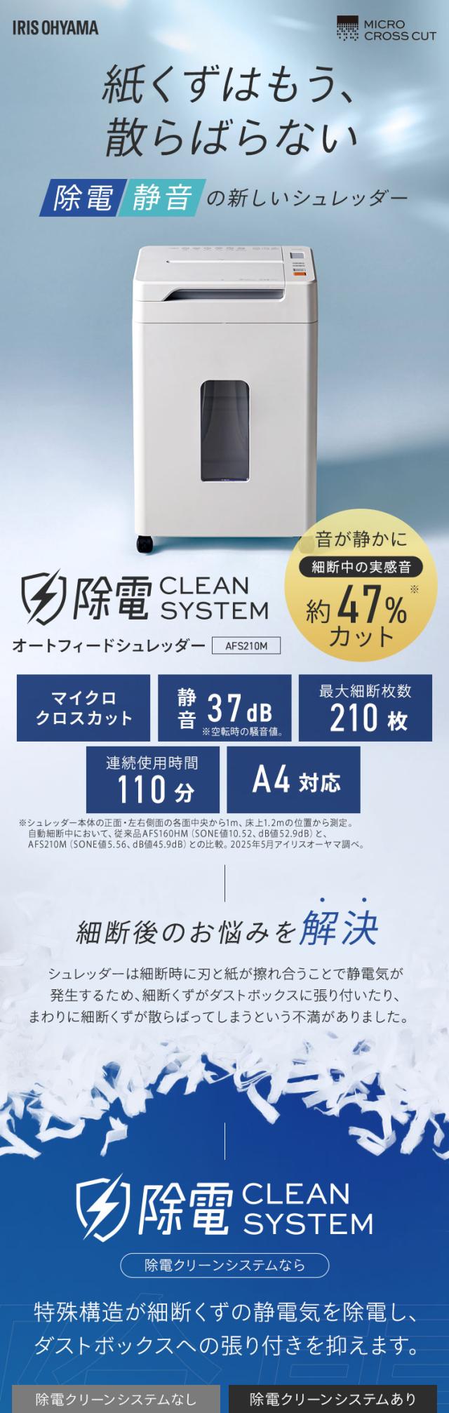 シュレッダー アイリスオーヤマ オフィス 静音 自動 電動 マイクロクロスカット 業務用 会社 書類 個人情報 大容量 28L キャスター付き 最大細断 A4 7枚 最大給紙 210枚 オートクリーニング くずならし機能 安心延長保証対象 AFS210M *
