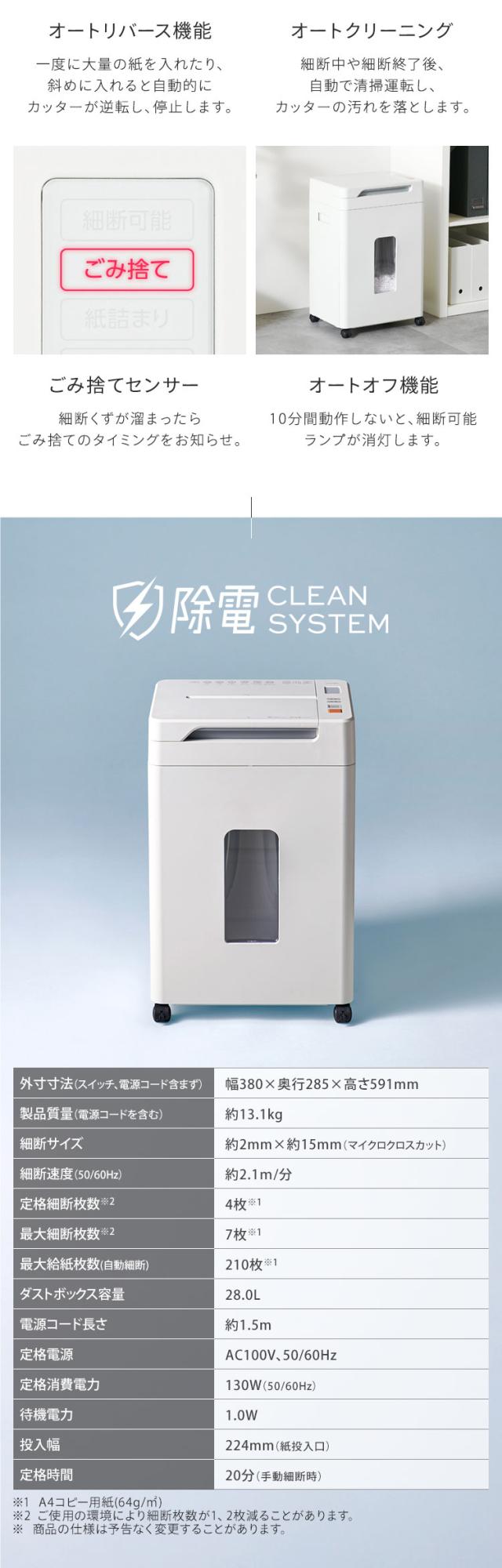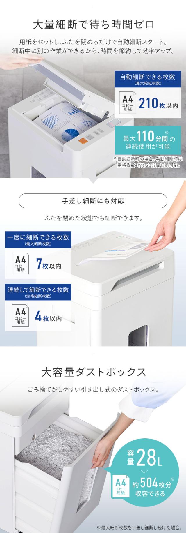 (検索用:シュレッダー・オフィス・静音・自動・電動・マイクロクロスカット・業務用・会社・書類・個人情報・大容量・28L・キャスター付き・最大細断・A4・7枚・最大給紙・210枚・オートクリーニング・くずならし機能・除電・シュレッター・4967576770453・アイリスオーヤマ)