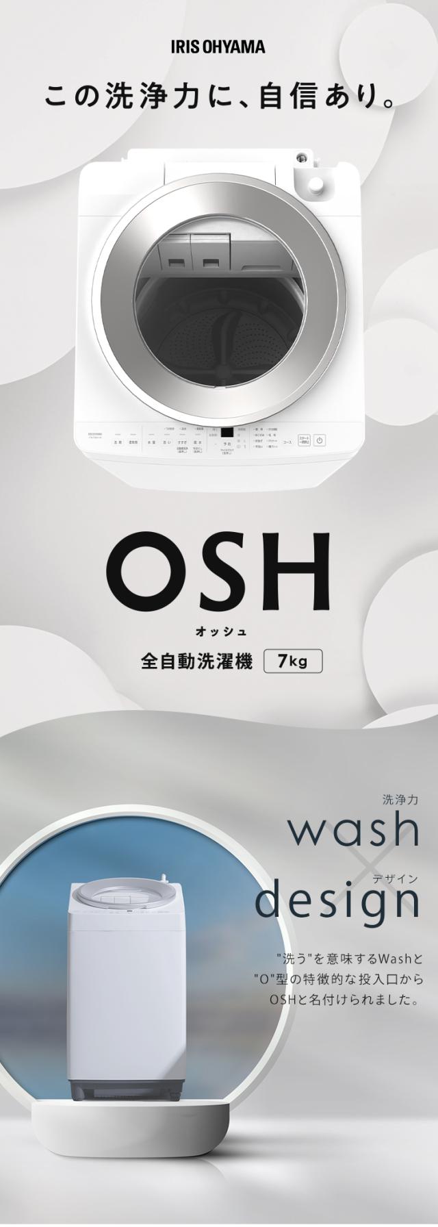 (検索用:洗濯機・7kg・7キロ・縦型・全自動・自動投入・縦型洗濯機・全自動洗濯機・ガチ落ち・極渦洗浄・節水・ラクとれ・シンプル・デザイン・一人暮らし・二人暮らし・新生活・時短・タイパ・OSH・オッシュ・4967576769419・アイリスオーヤマ)