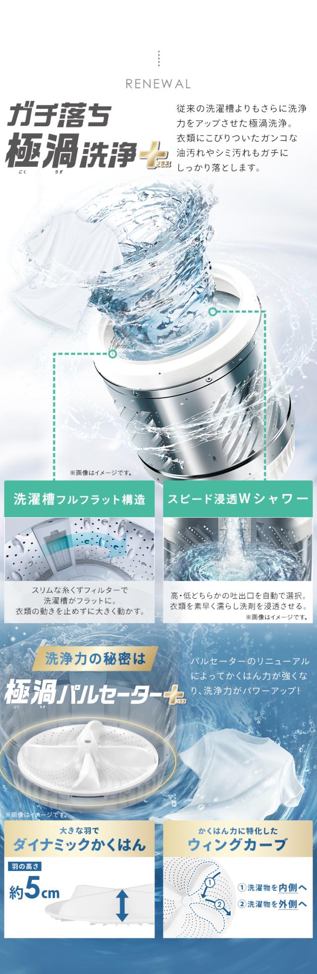 従来の洗濯槽よりもさらに洗浄力をアップさせた極渦洗浄。