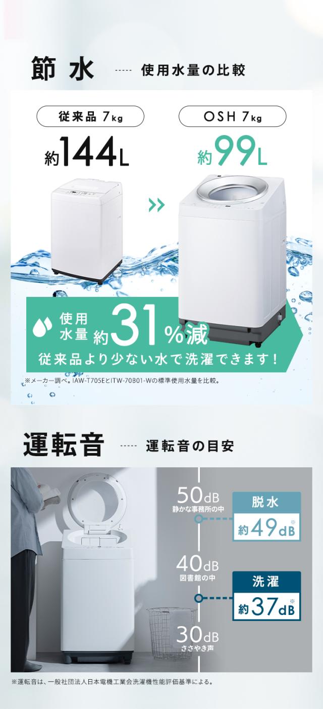 【施工あり】洗濯機 7kg 縦型洗濯機 縦型 全自動洗濯機 本体 全自動 洗剤 柔軟剤 自動投入 ガチ落ち 極渦洗浄 節水 時短 シンプル デザイン 7キロ 一人暮らし 安心延長保証対象 アイリスオーヤマ OSH オッシュ ITW-70B01-W * 【HS】