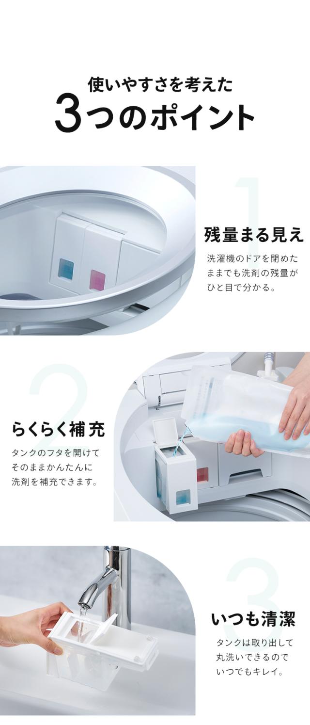 スタートするだけで適量の洗剤が投入されるので、毎日の洗濯がもっとラクに!