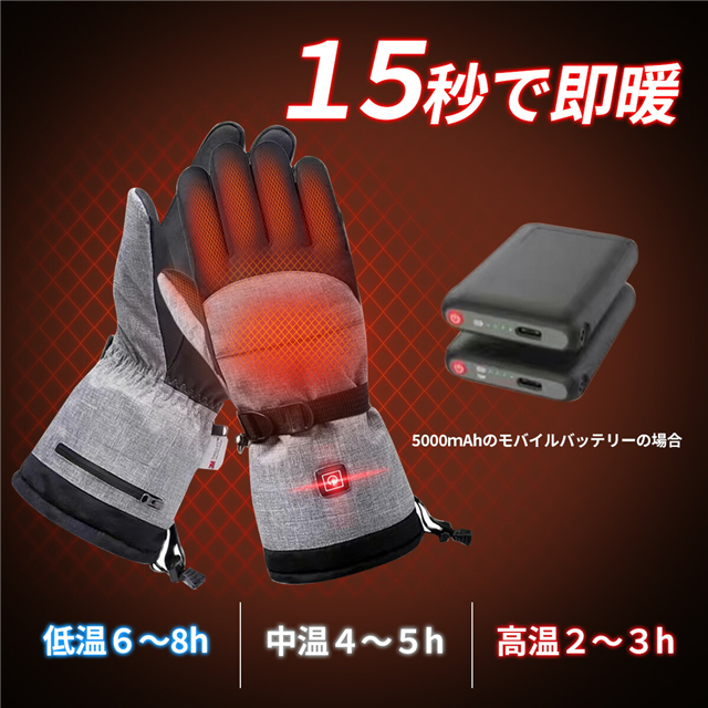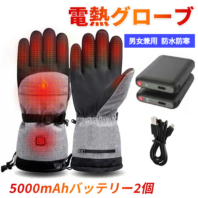 電熱グローブ ヒーターグローブ タッチパネル対応 充電式 5000mAhバッテリー付き 防水 防寒 ヒーター付き サイクリング スキー スケート ハイキング ハンティング 男性女性用