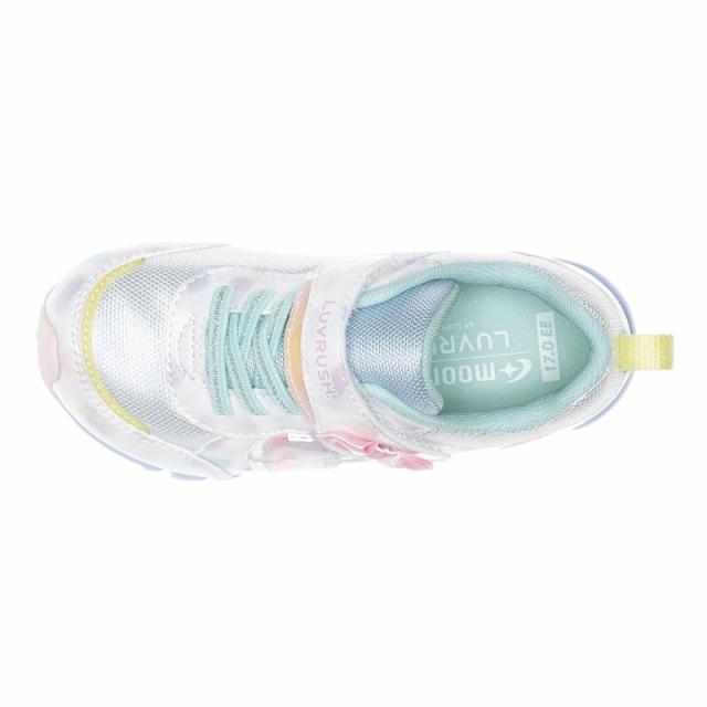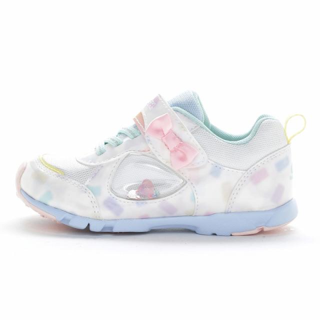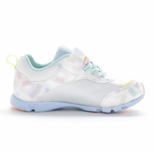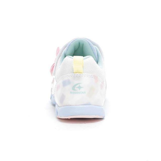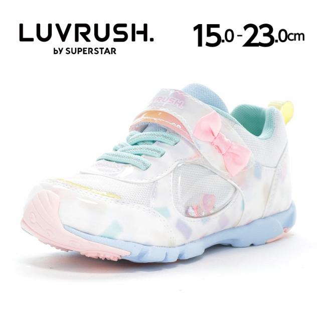 『もっと可愛く!もっと速く!女の子のスポーツシーンを足元から応援!』をコンセプトにガールズ向けに誕生した「ラブラッシュ バイ スーパースター」のキッズシューズです。「速く走る」を体現するために搭載されたパワーバネが走りをアシストします。今シーズンの商品のデザインテーマはグミです。まるで本物!?なグミのパーツがかわいいデザインです。カラー名もお菓子っぽくなるようこだわりました。運動会や体育の時間、クラブ活動等の走るシーンにおすすめです。重さは17.0cmで片足約100gです。【パワーバネ】ムーンスター独自開発の特殊なゴムを靴底に搭載し、地面を踏みこむときにパワーを蓄積し、蹴り出すと同時に一気にパワーを推進力に。【カウンターボックス】子どもの柔らかくゆがみやすい足を箱型構造でしっかり支えます。【Ag+抗菌防臭】銀イオンの抗菌作用でにおいのもととなる菌の増殖を抑制し、防臭効果を発揮します。【洗えるインソール】インソールは取り出して洗えるのでいつも清潔に保てます。【耐摩耗ラバー】靴底にはすり減りが少なく、高い耐久性を発揮するラバーを採用しています。【軽量設計】軽くなるよう工夫を施した設計です。